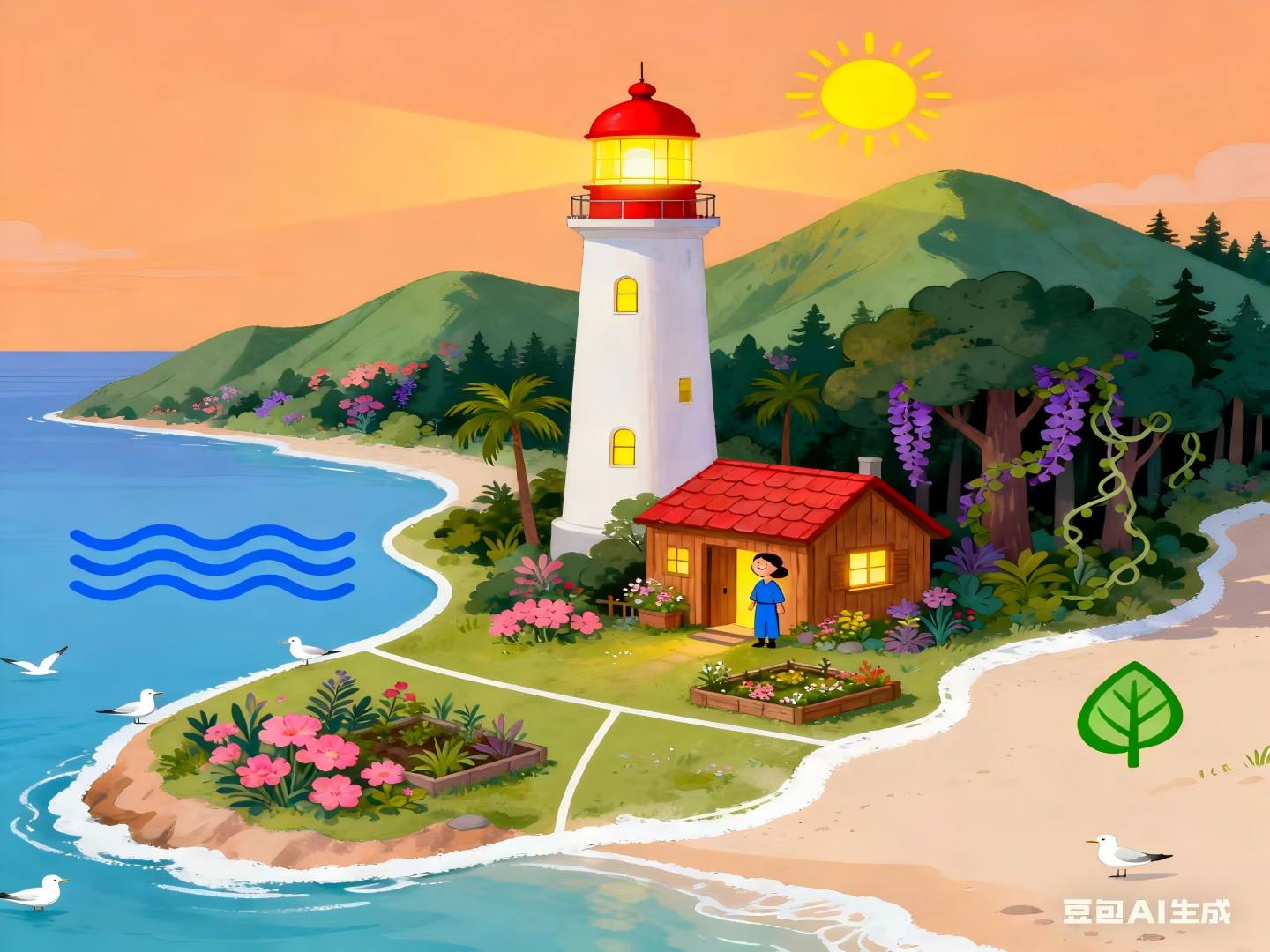 心灵独白:“刚入学时总怕跟不上节奏,现在发现只要朝着目标走,就像灯塔的光一样,再远的路也有方向。这个岛提醒我:我自己,就是自己的‘成长灯塔’。”